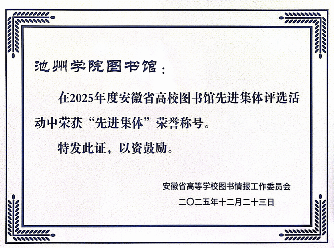 近日,在安徽省高等学校图书情报工作委员会公布的2025年度先进集体和先进个人评选结果中,我校图书馆在众多参评高校图书馆中脱颖而出,获2025年度“先进集体”称号,馆长叶三梅获“优秀馆长”称号,馆员王蕴涵获“先进工作者”称号。