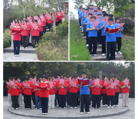 清晨,在樱花园畔学子们身着统一文化衫,手持文稿,身姿挺拔,齐声诵读,感受经典魅力。《少年中国说》的雄浑篇章在晨风中回荡,“少年强则国强”的金句掷地有声,淋漓尽致地展现出青年学子的拳拳赤子心与殷殷报国情;在《祖国颂》激昂的诵读声中,真挚抒发对祖国的热爱与赞美,家国情怀在朗朗书声中愈发浓厚;伴着秋日晨光,大家诵读着《秋天里的中国》,在细腻的文字里捕捉季节的诗意与美好,感受自然与生活的温馨;在《读中国》深情诵读里,学子们重温着历史画卷,感悟字里行间流淌的敬意与温情。